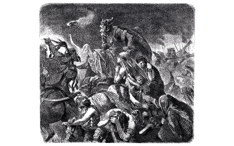 Illustration of Attila in the battle on the fields Catalaunian plains