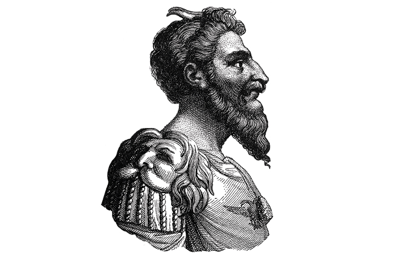 Engraved illustration of Attila the Hun, 434–453 AD